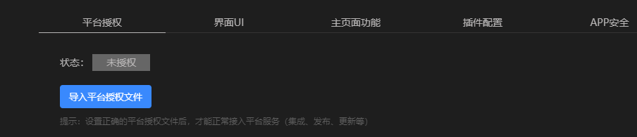 点击导入平台授权文件按钮,可将LIGHT_LICENSE文件导入到工程的native文件夹下。