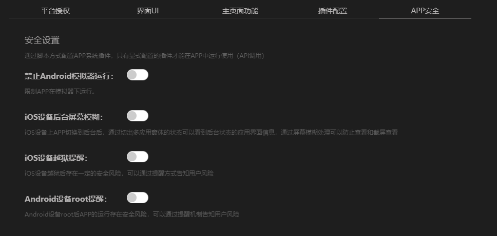 直接点击开关按钮,可实时修改安全配置各配置项。