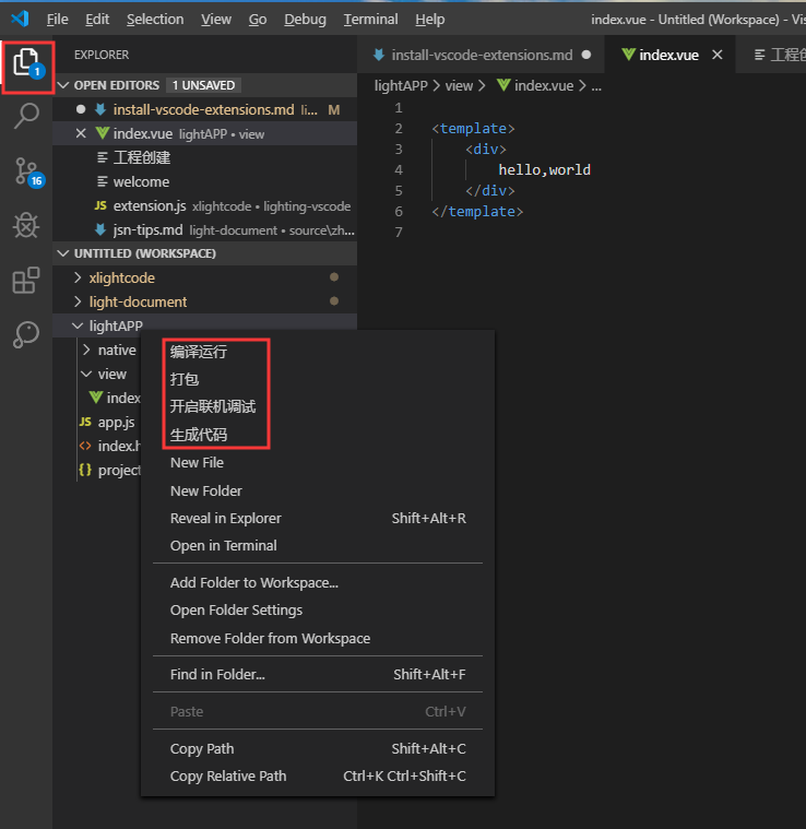 lighting 推荐 VSCode 作为开发编辑器,并提供了 VSCode 插件,帮助开发者更加快速、高效地开发light工程: